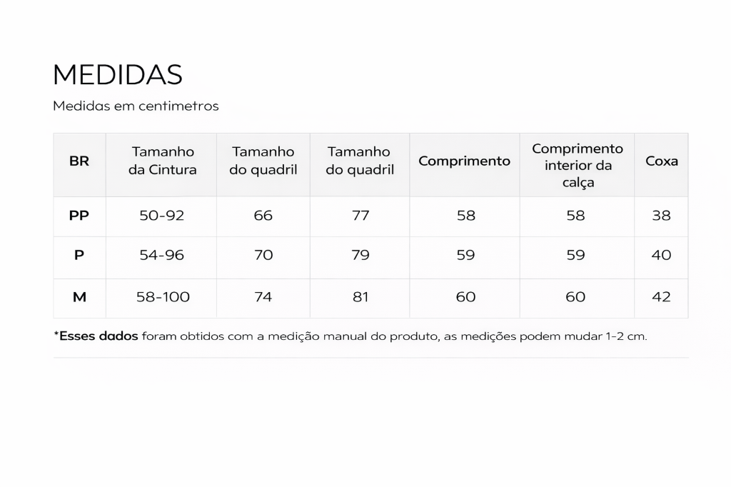 Consulte a tabela de medidas para maior precisão